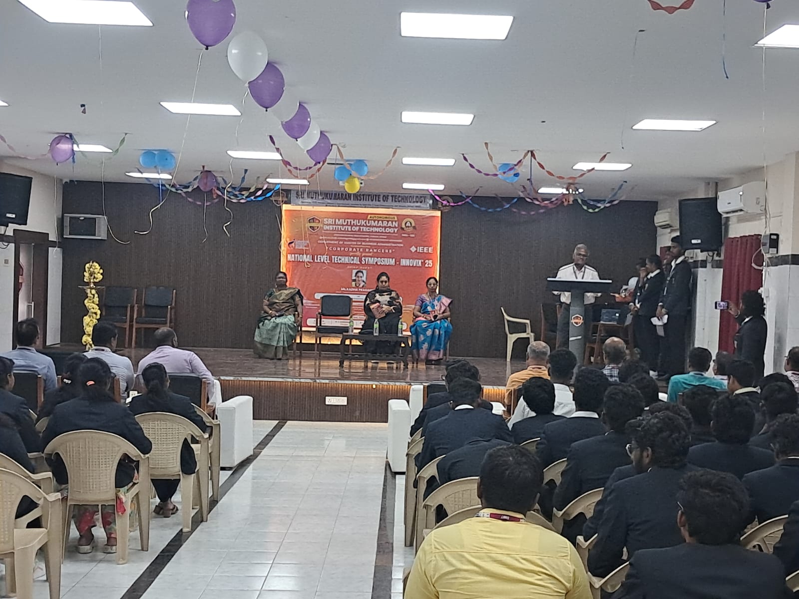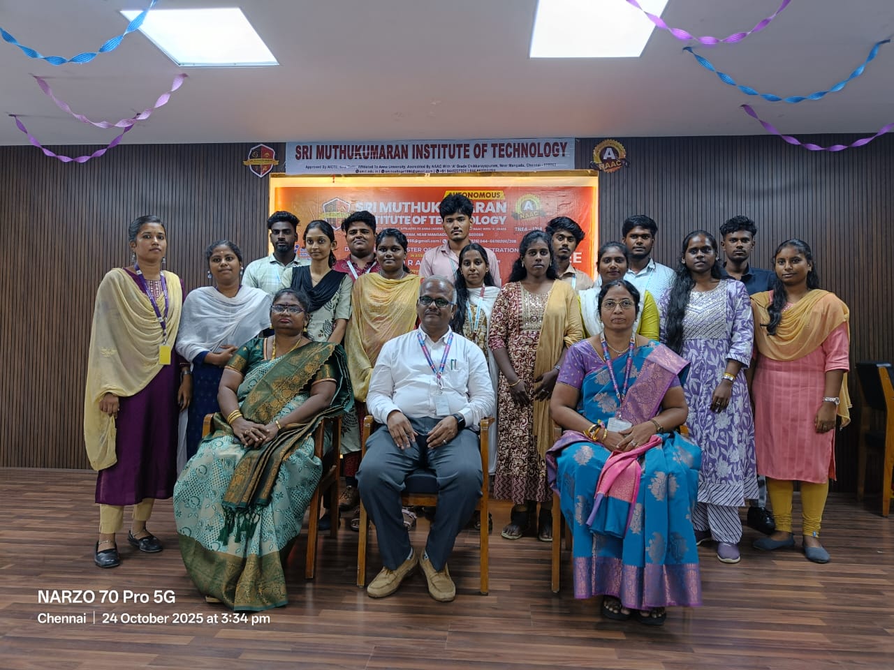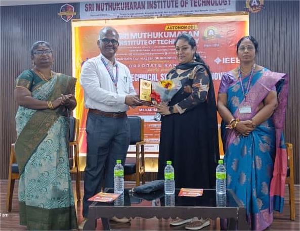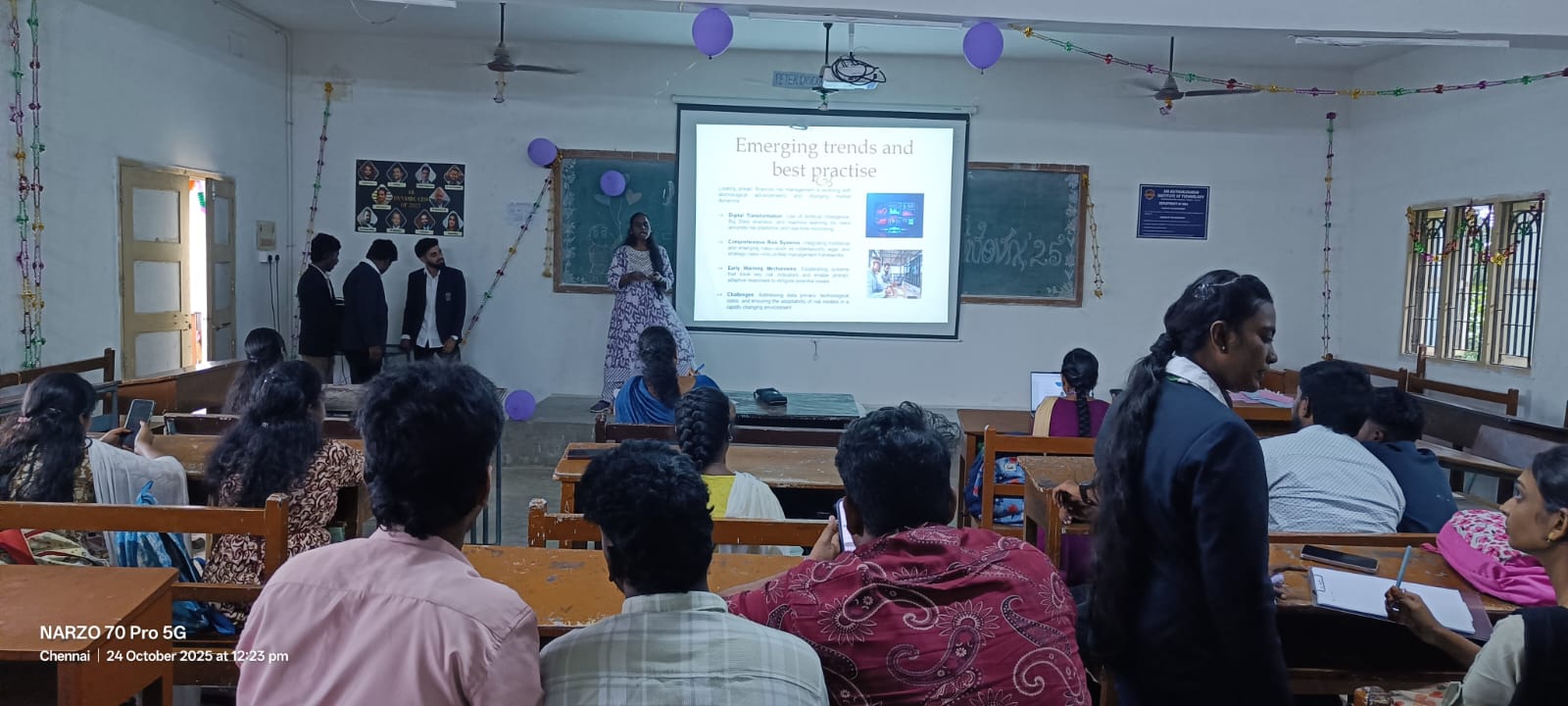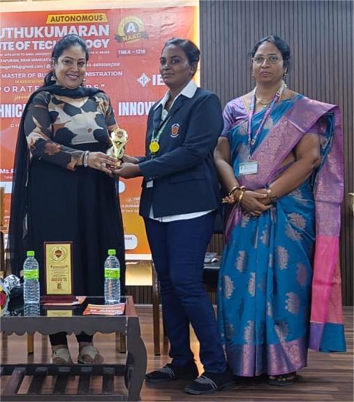 The Department of MBA conducted the INNOVIX’25 Symposium on 24th October 2025. The program commenced at 11:00 a.m. with the presence of our Principal, Vice Principal, and Chief Guest Ms. Radha Prasanna, Head of Talent Acquisition, Chennai. Students from various colleges actively participated in the symposium. Several events such as Paper Presentation, Memory Game, Logo Creation, and Connections were organized as part of the program. Participants enthusiastically took part in all the events. The overall championship trophy was won by Tagore Engineering College, Chennai.